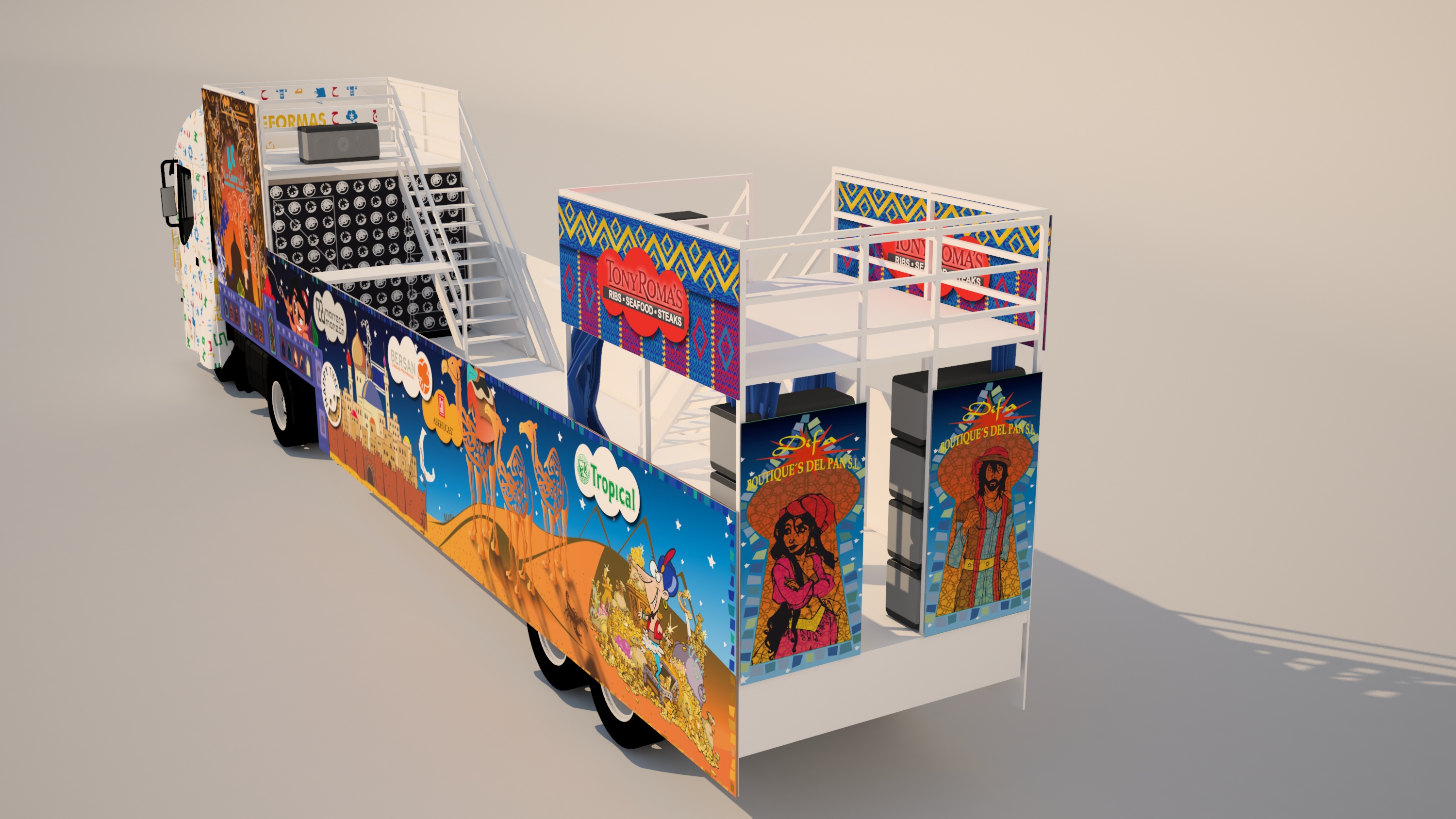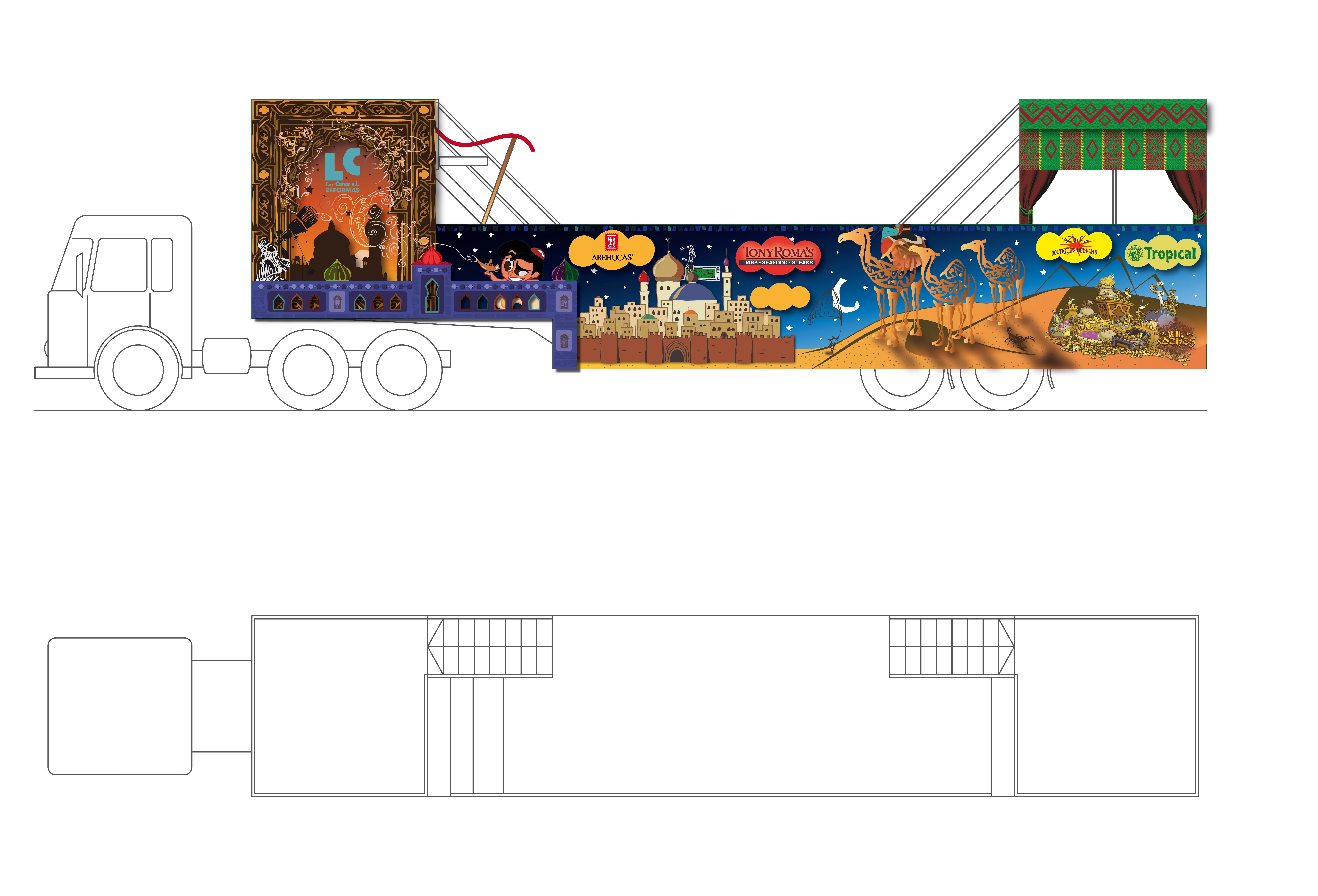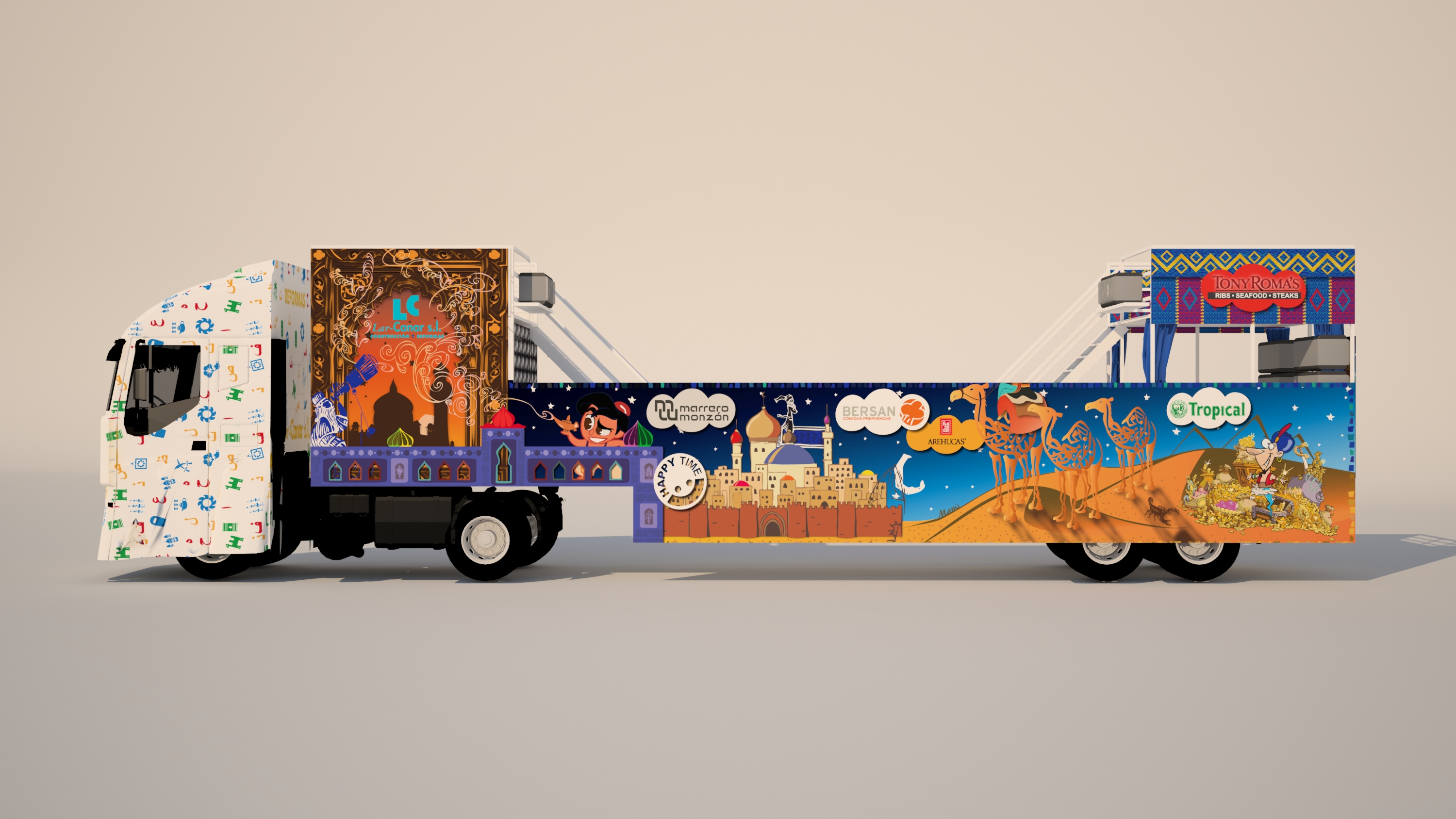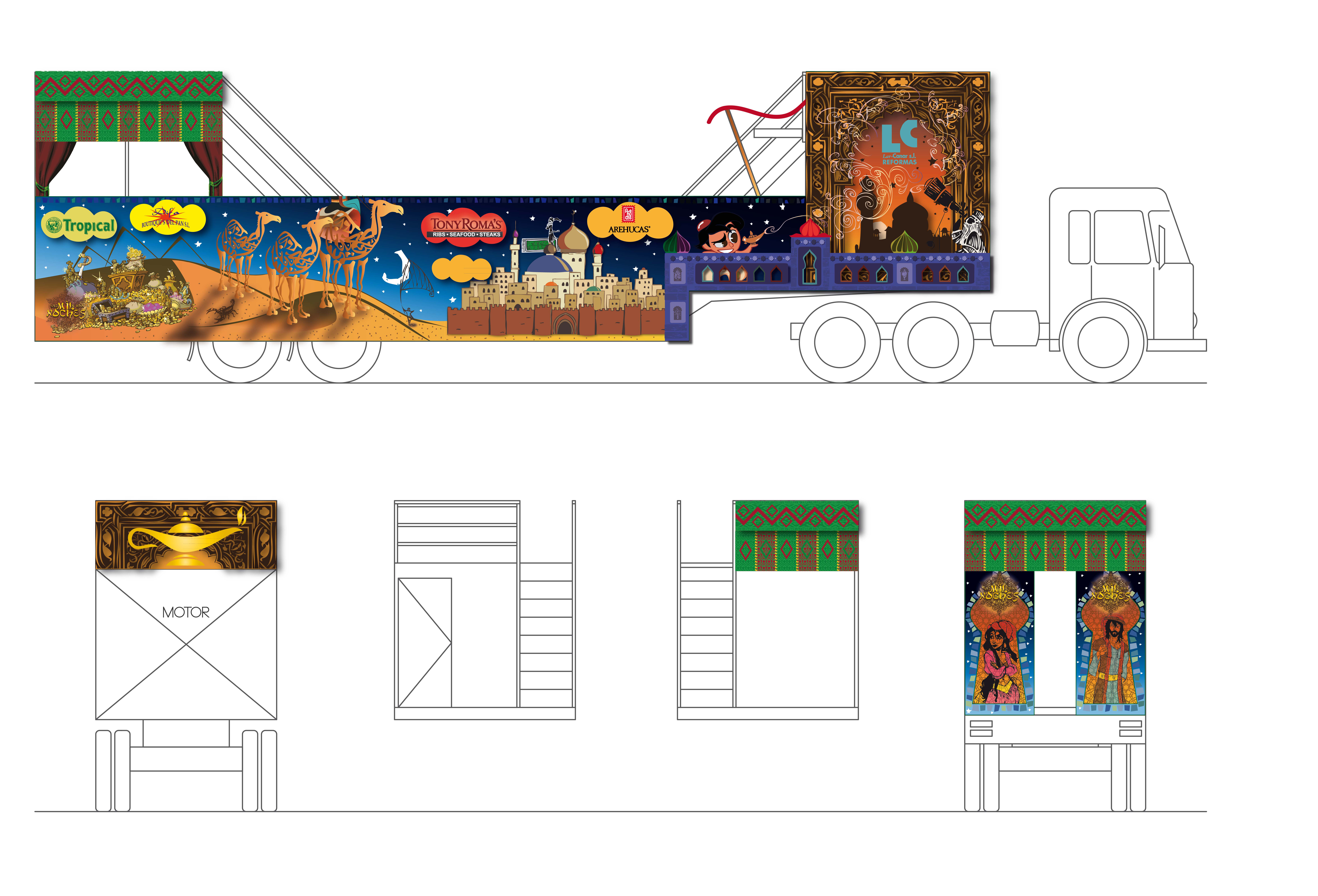 Con motivo del Carnaval de Las Palmas de Gran Canaria se elaboró el diseño exterior e interior + cabeza tractora de una carroza con motivos árabes, puesto que el tema ganador ese año consistía en las "mil y una noches".