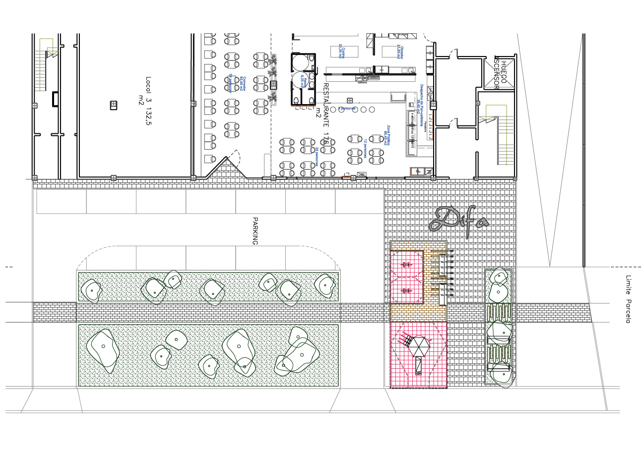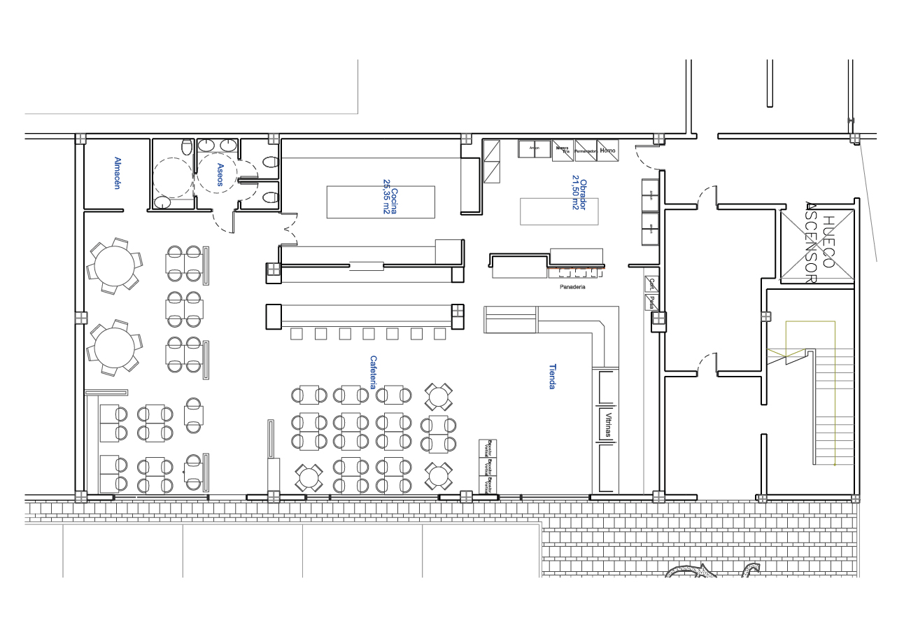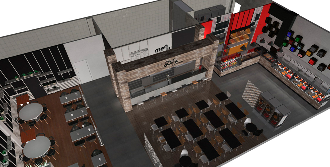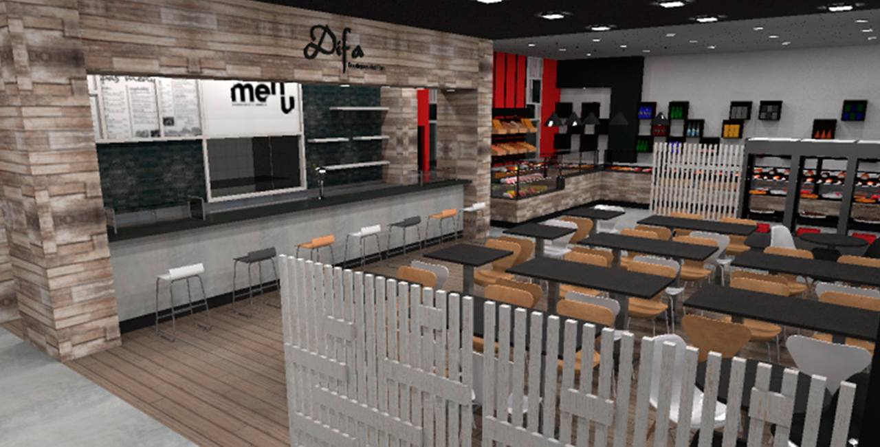 Se nos solicita por parte de uno de nuestro clientes habituales adecuar la imagen de una nave existente, recientemente adquirida por la compañía, a la marca, además se debe diseñar una tienda de unos 300 m2 en planta baja que dispondrá de una zona para el despacho del producto, una zona de cafetería y una zona de restauración. En planta alta se dispondrán las nuevas oficinas de la empresa en las que se ha buscado la diafanidad junto con una ambiente de trabajo en común y distendido.