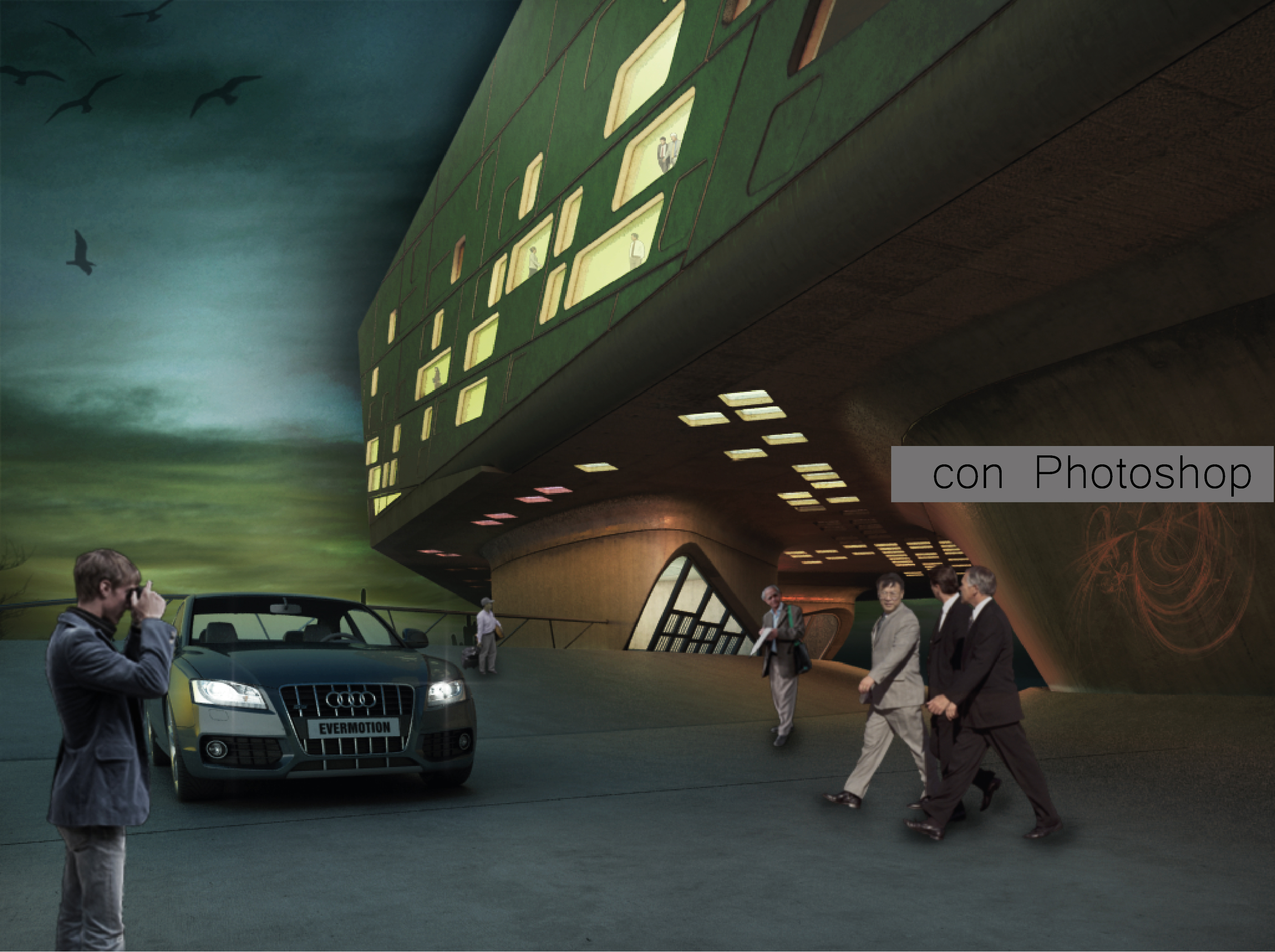 Recreación en tres dimensiones del Science Center en Wolfsburg de Zaha Hadid. Para su elaboración se ha utilizado 3DS Max en el modelo, V-RAY en el renderizado, y Photoshop en la postproducción.