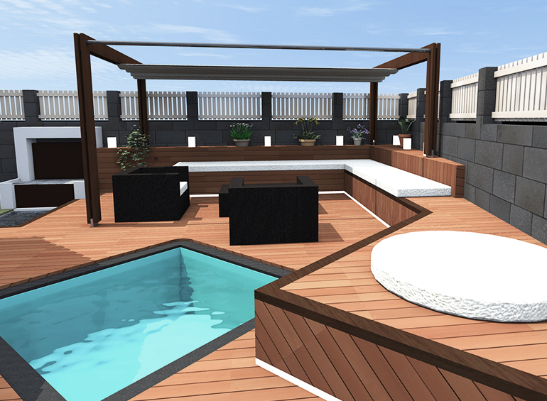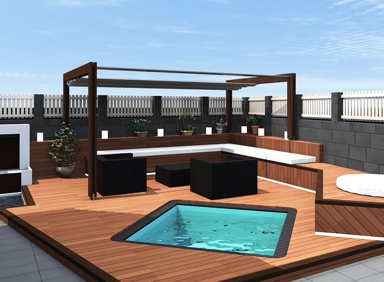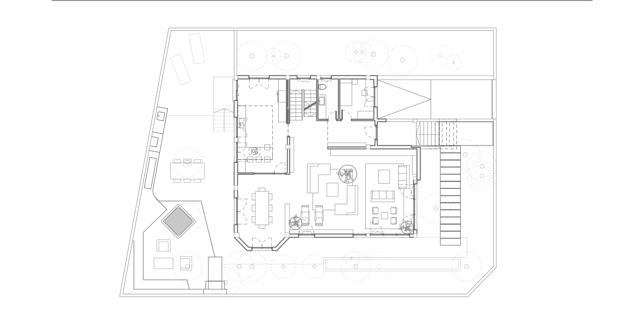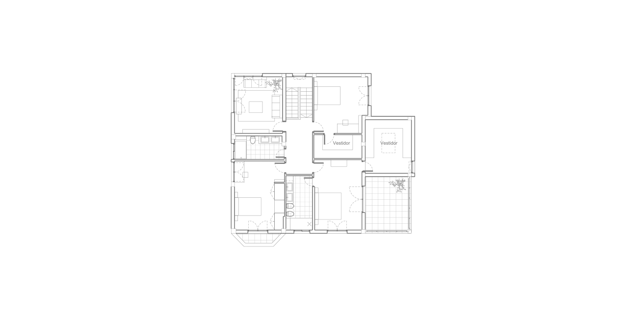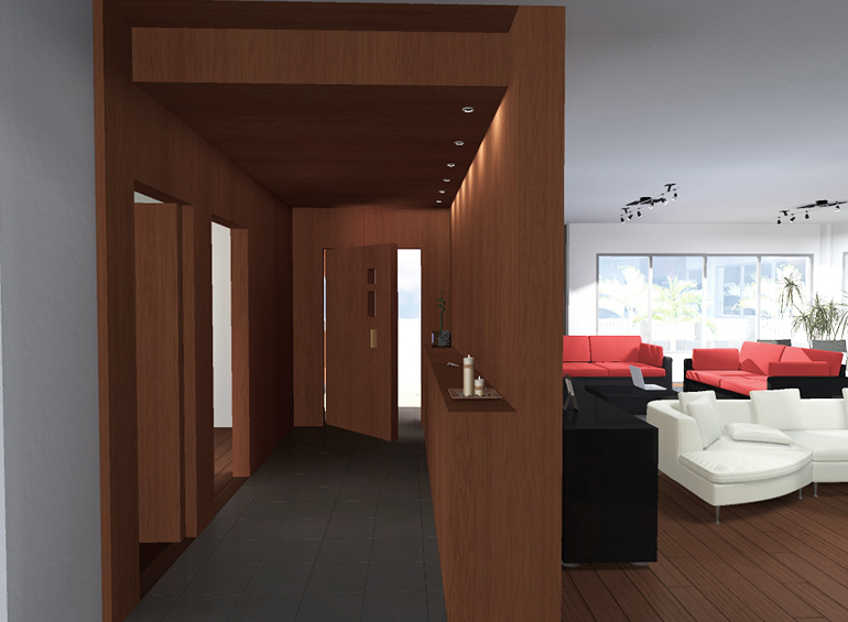 Al interior la vivienda posee espacios muy oscuros y cerrados, con ventanas retranqueadas que originan mucha sombra, por lo que se disponen todas las ventanas a ras de fachada, ampliando a su vez huecos, por lo que se consigue una vivienda mas luminosa y diáfana. Se utiliza como pavimento principal la madera, todas las carpinterías son renovadas, al exterior se quitan molduras y se colocan paneles fijos. El jardín es totalmente reformado, se cambia la puerta de acceso y en el patio posterior se construye un chill-out con jacuzzy.