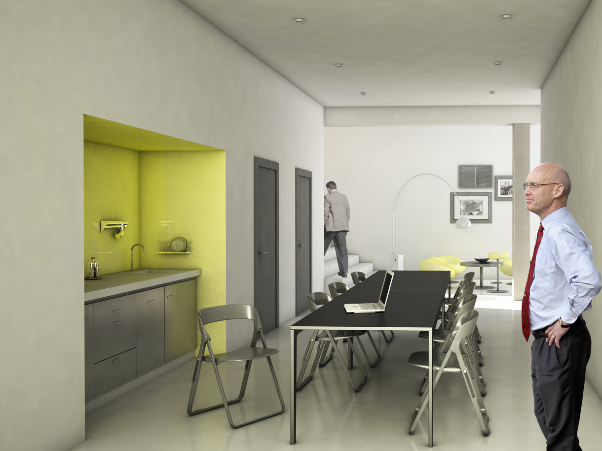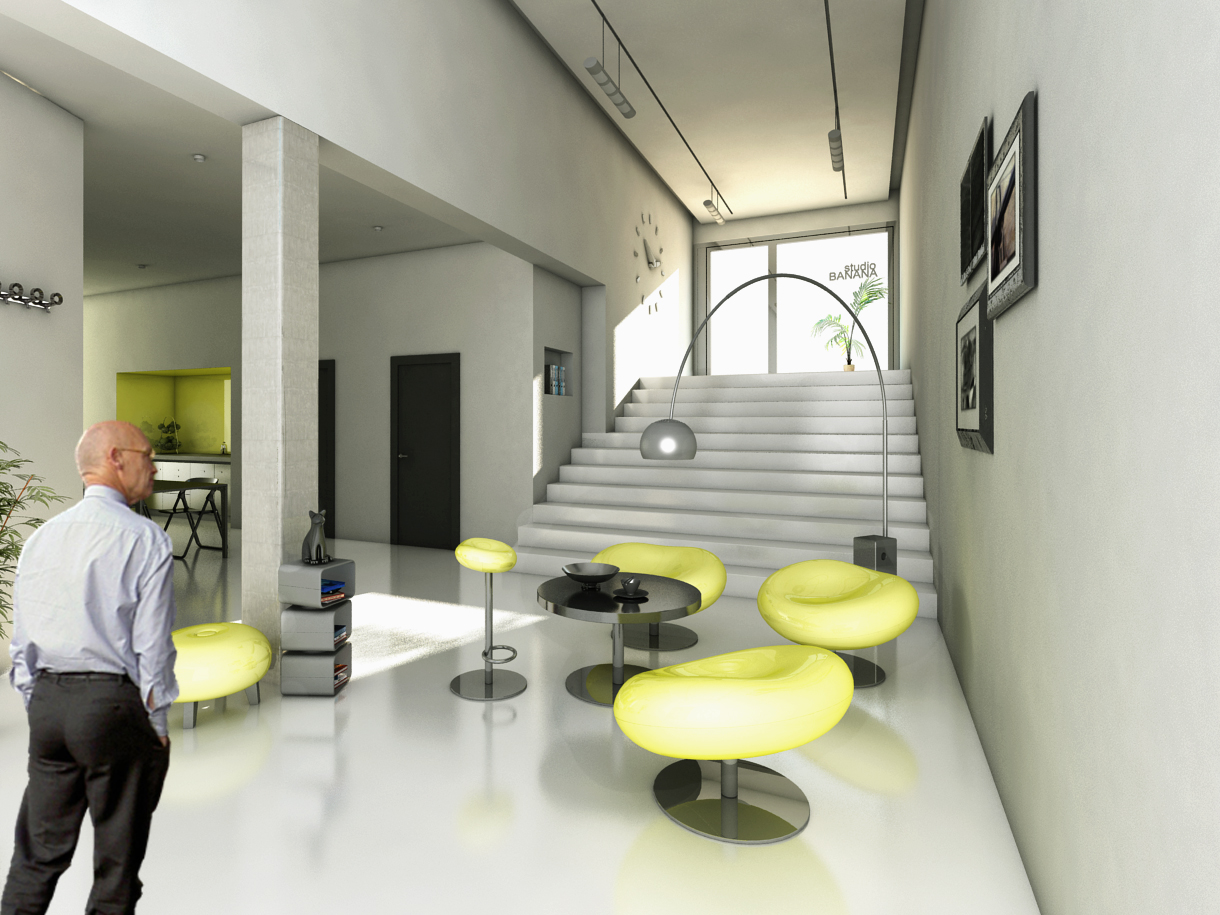 Mediante la utilización de 3DStudio y posterior postproducción en Photoshop se elaboró de una serie de imágenes interiores recreando el espacio de trabajo de "Studio Banana".