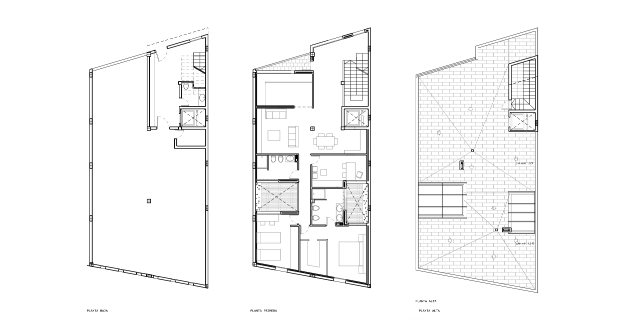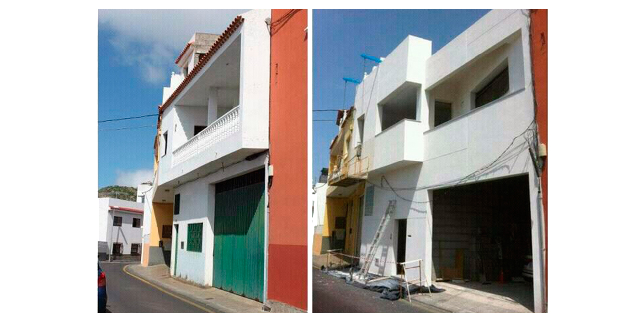 Este encargo nos llegó como una legalización de una vivienda autoconstruida, consistente en la típica tipología de “casa salón canaria” se encontraba ejecutada la totalidad de la estructura y las divisiones interiores de dos viviendas que se encontraban en planta alta. El encargo era unificar estas dos viviendas en una, y mantener la planta baja como garaje, acceso e instalaciones, además se adecuaría la fachada a una imagen más actual. Por lo tanto pasaría a ser una reforma integral con modificaciones puntuales en la estructura a fin de introducir más luz en la vivienda. Dada la planta alargada no quedo mas alternativa que optar por una distribución lineal, si bien la existencia de dos patios que serían agrandados favoreció la introducción de la luz en la vivienda y eliminó esa imagen de “vivienda pasillo” con la introducción de uno de ellos en la distribución. Respecto a la fachada se jugó con el volado existente y se busco las vistas privilegiadas que tenían sobre el mar, dando continuidad a la cubierta y abriendo el pretil de la misma.