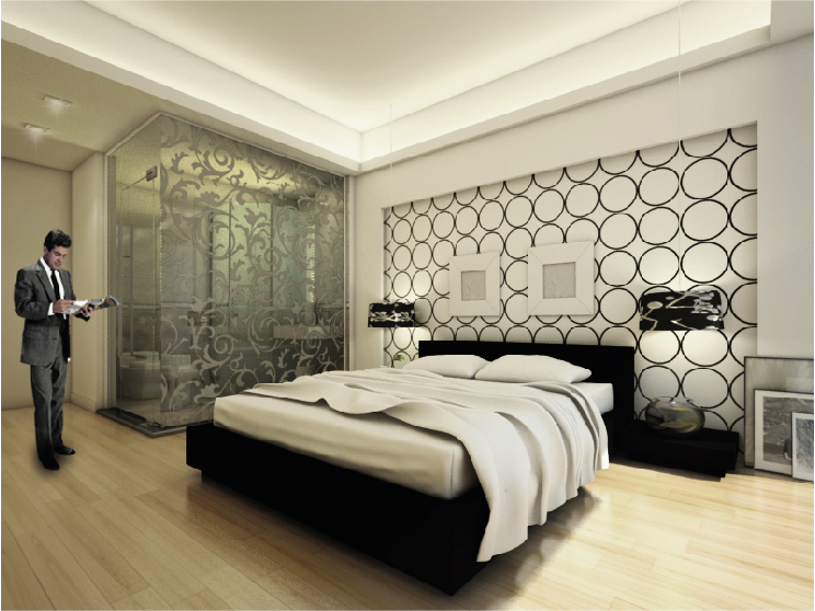 Recreación en tres dimensiones de una habitación de hotel moderna. Para su elaboración se ha utilizado 3DS Max en el modelo, V-RAY en el renderizado, y Photoshop en la postproducción.